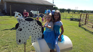 She wanted a Frozen party at the local petting zoo on a family farm - so we did a Frozen at the Farm theme. It really turned out cute! I did food themed with different parts of the movie and everyone seemed to enjoy it. The location was fun as always - petting zoo, games, bubble machine (Ryan's personal favorite), and train rides. She was blessed with lots of friends and family there to celebrate her!